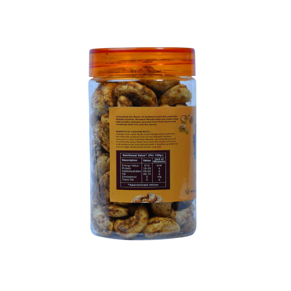 What sets our MASALA CASHEW apart is the intricate balance of spices that delivers a burst of flavors in every bite. These premium quality cashews are roasted to perfection, offering a satisfying crunch while retaining their natural creamy texture. Beyond the taste, masala cashews are also an excellent source of protein, healthy fats, vitamins, and minerals, making them a guilt-free snack that satisfies both your cravings and nutritional needs.